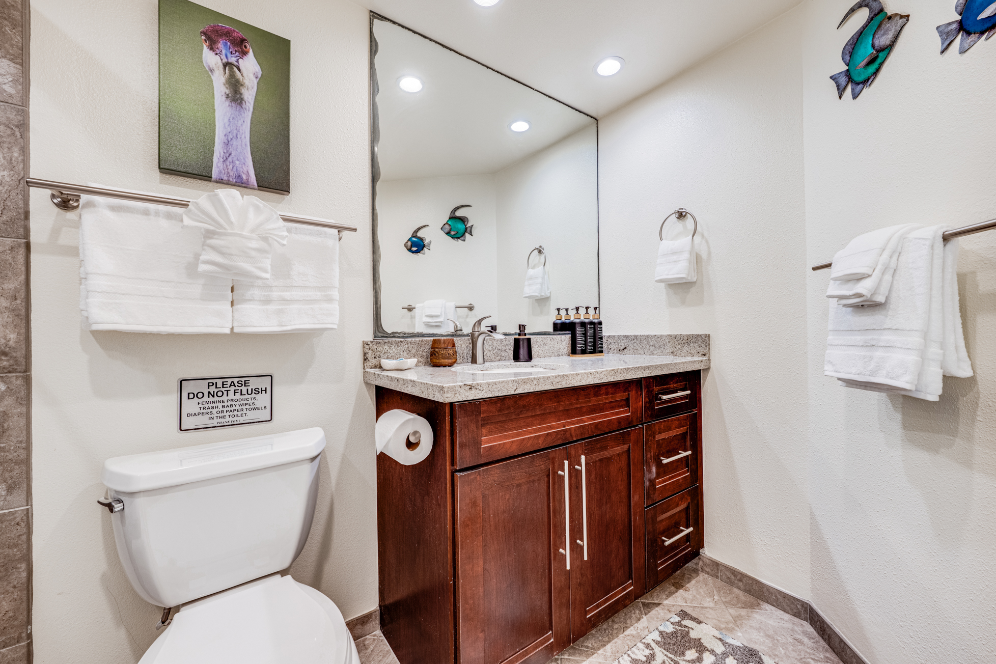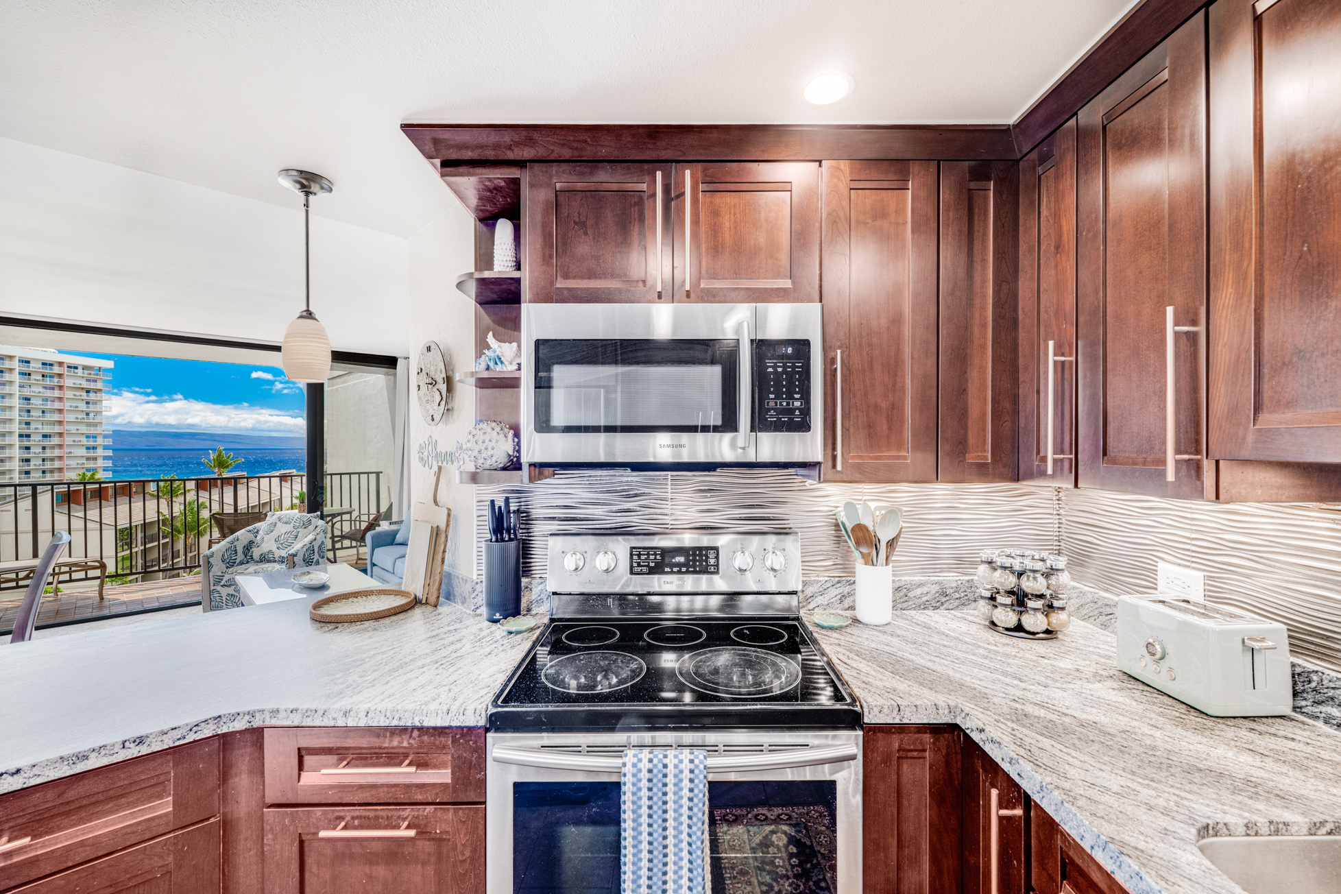 Unit comes with a Vacation Starter Kit: Includes Toilet Paper, Paper Towels, Trash Bags, Hand Soap, Dish Soap, Laundry Detergent, Dishwasher Tabs, Hairdryer, Iron & a Starter set of Shampoo, Conditioner & Body Soap. ABC Store nearby and Times Supermarket in Honokowai are convenient stops for any restocking needs or forgotten-at-home personal items.