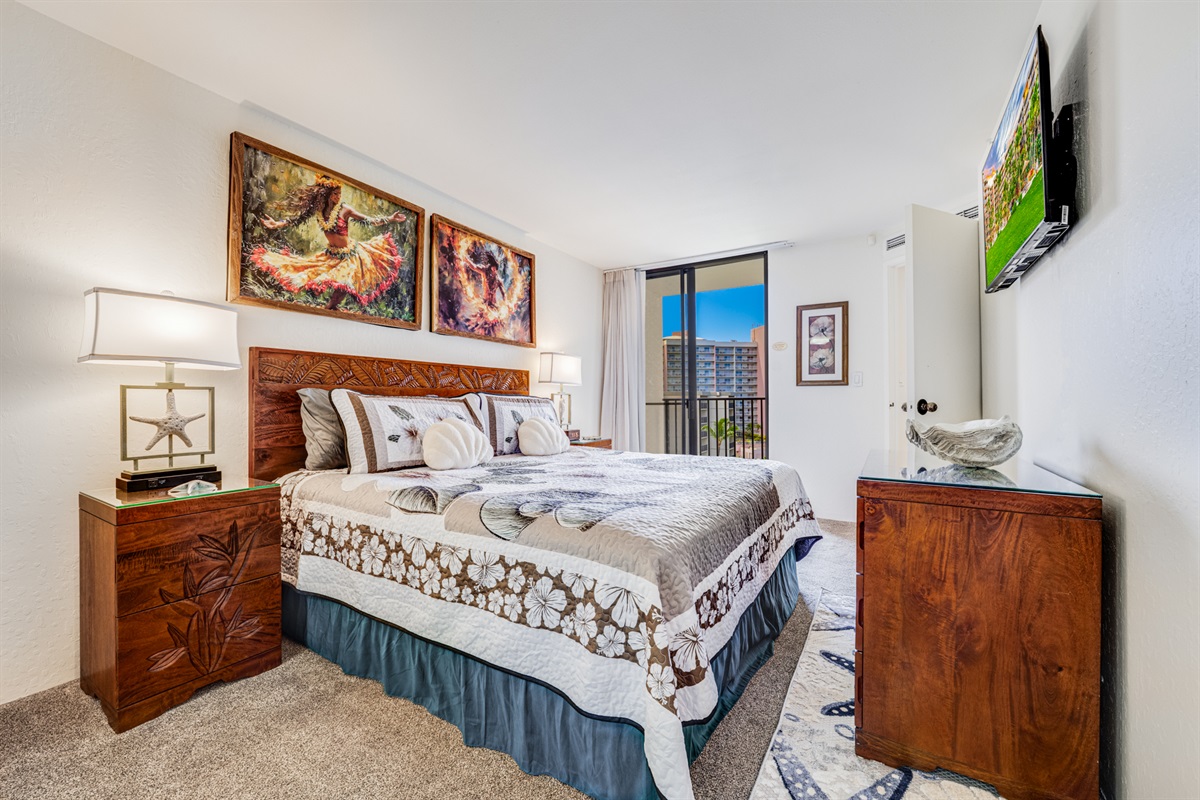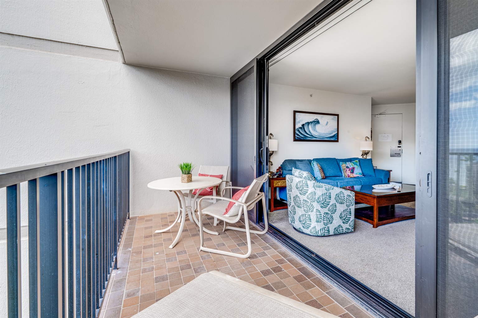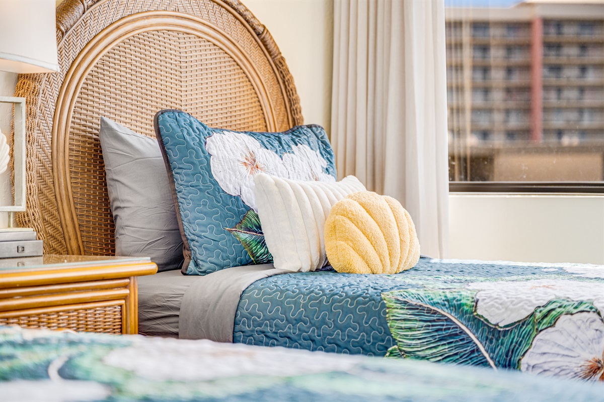 Inside, enjoy fresh tropical decor and cozy beds, including a sofa bed to allow for a 6-person family or group of friends to share the condo. There’s a full kitchen to cook up some local fish and veggies for your group, or make a cup of coffee to sip on the lanai before you head out for the day!