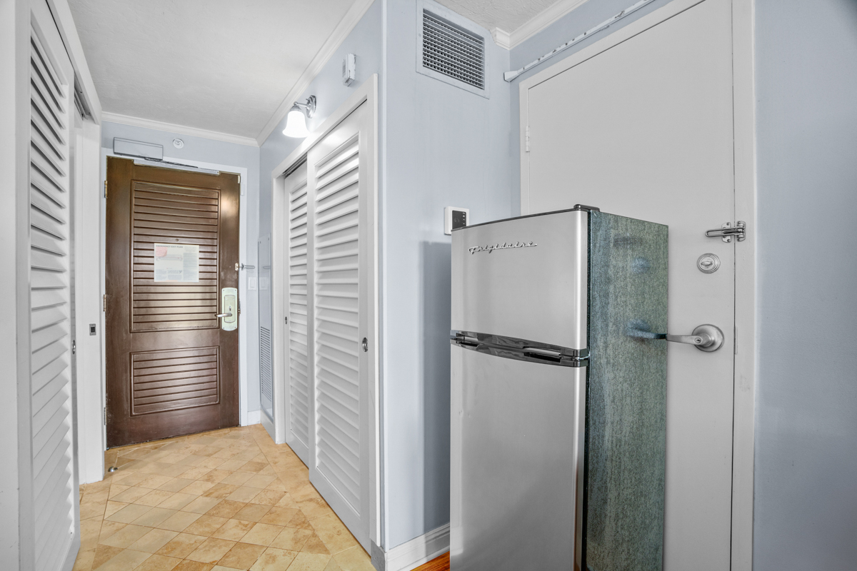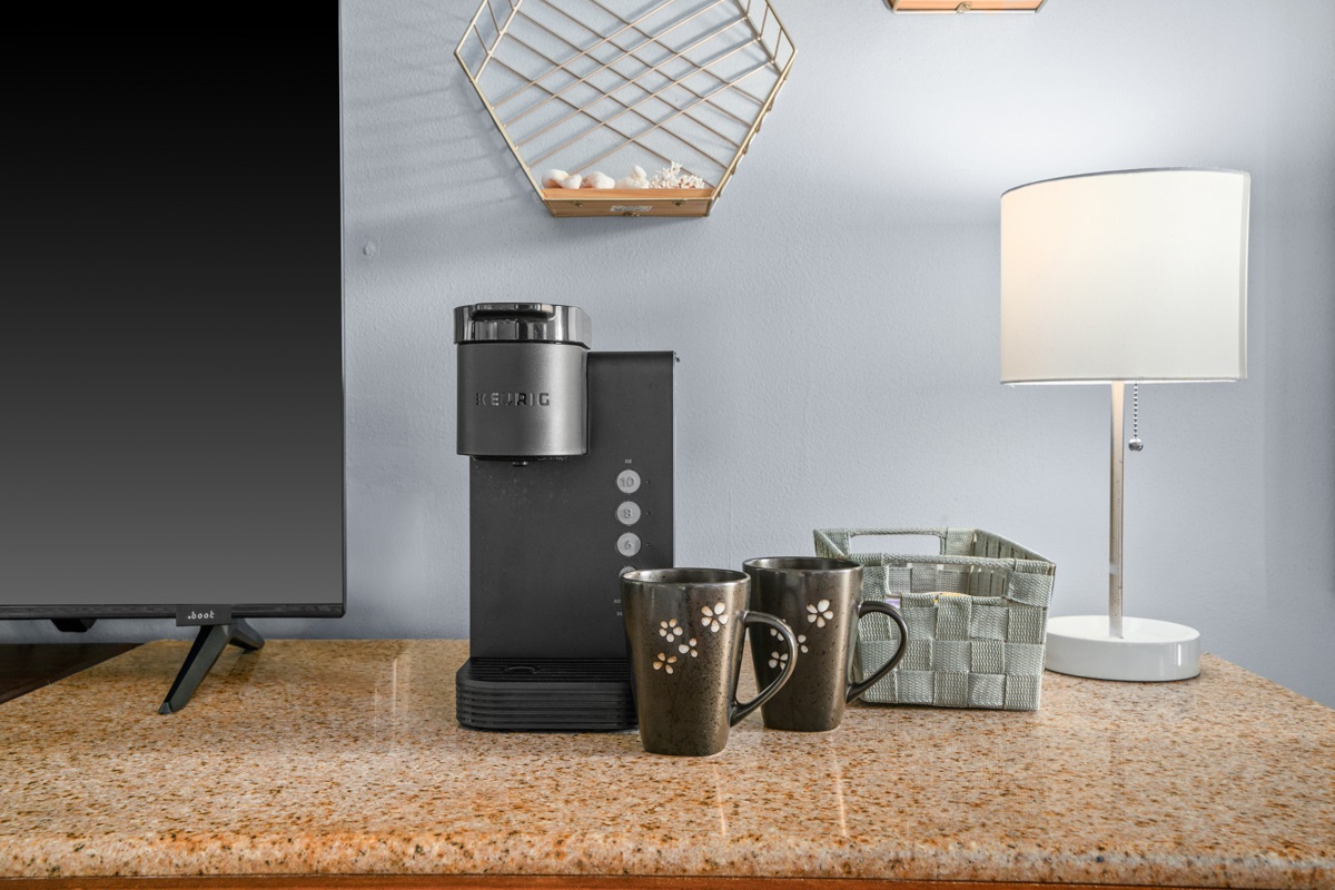 Mini fridge & coffee maker for easy mornings