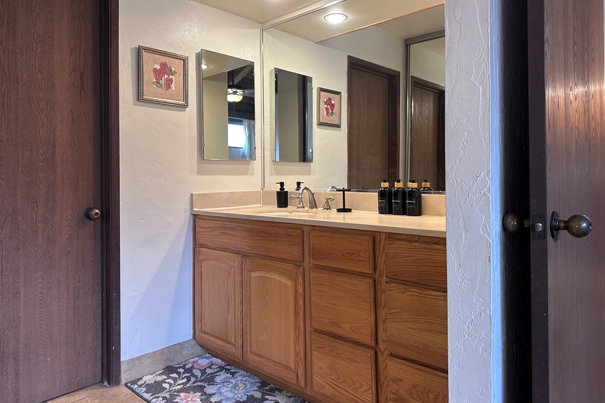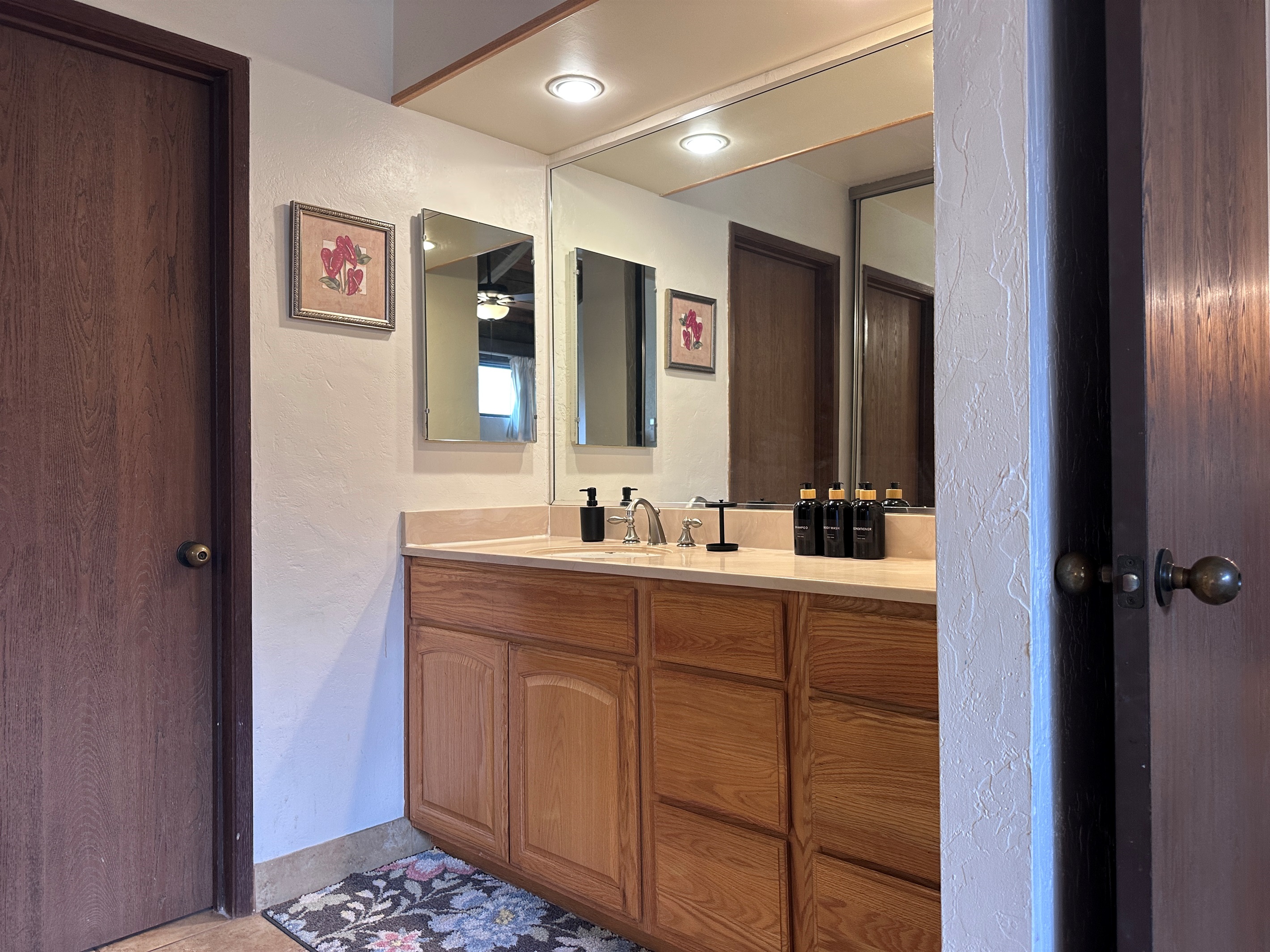 Two spacious full bathrooms: The primary bathroom is large with a tub and shower, and the second bathroom is also nice and roomy with a glass and tile stand-up shower. We provide shampoo, conditioner and body wash for your stay.